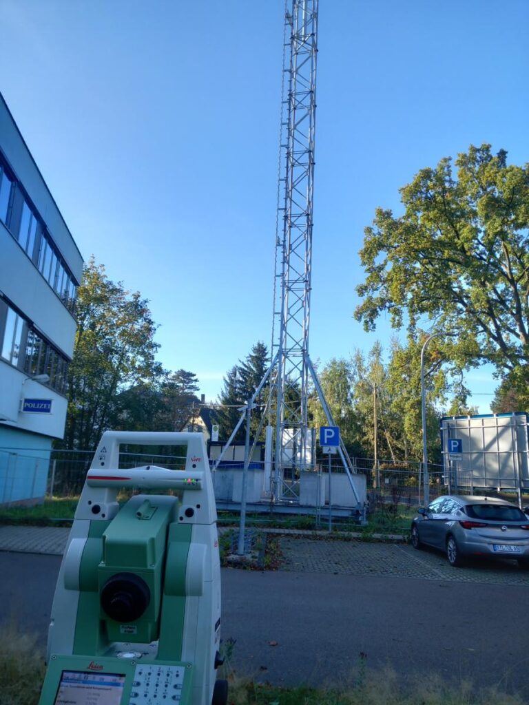 - tachymetrische Überwachungsmessung zur Übeprüfung der Lotrechtstellung eines Funkmastes