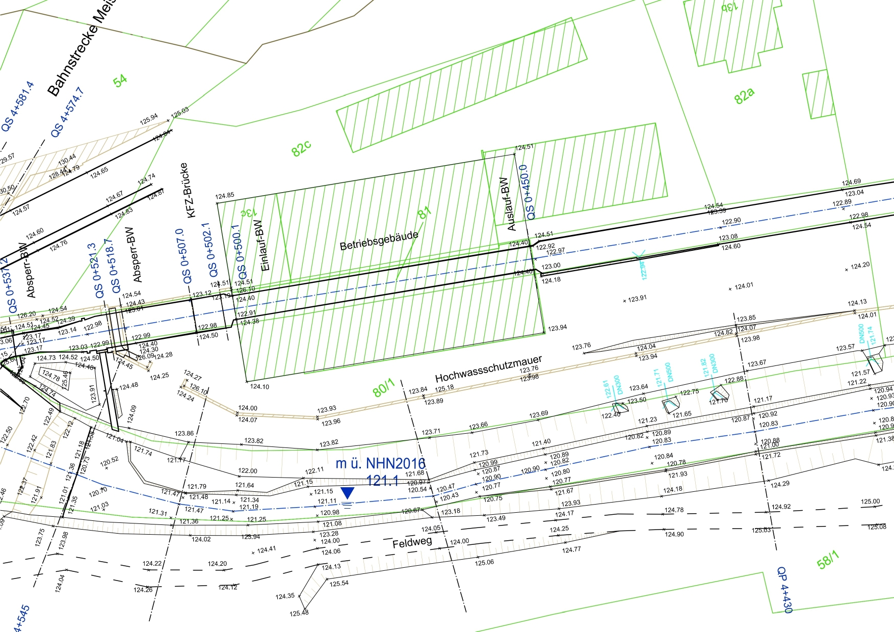 - Erstellung von Lage- und Höhenplänen sowie Längs- und Querprofilen und Ansichten aller querenden Bauwerken
